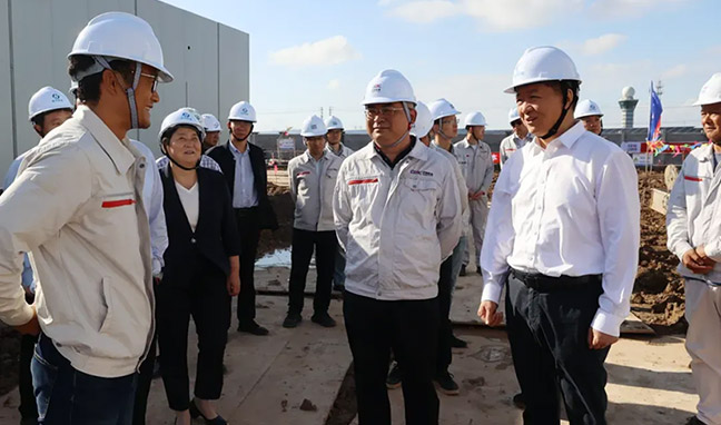 10月16日,集團(tuán)黨委書記、董事長董毅與中國能建江蘇院黨委副書記、總經(jīng)理查申森一行前往興悅420MW項目現(xiàn)場開展聯(lián)合安全檢查,并就推進(jìn)項目建設(shè)事宜座談交流。